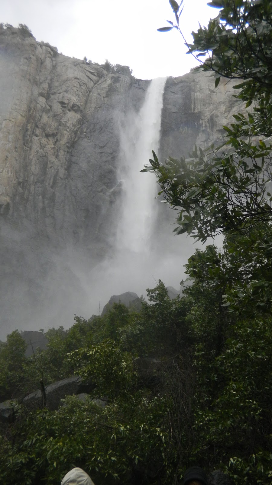 We spent a lovely day touring the park, taking pictures, had lunch at the historic Ahwahnee Lodge, got thoroughly drenched at Bridalveil Falls and then drove south from Yosemite Valley on 41through the mountains and on back to make sure all the animals were fed and watered that evening. since we are not real hikers, we knew we would not do anything that was not marked easy, so a day trip worked out well for us. We did go through the campground where we wold have stayed and reviewed our spot- it is one of the best in the park as you can see- with a wonderful view of Half Dome and plenty of space- but getting to it on the small roads and through the turns in the campground would have been iffy. Also, the weather had changed on Monday, with snow and low temperatures forecast for the following 2 days - again not something we would really relish with no electricity. - so we were glad we went Monday And w, we would also have probably been without battery power. Tuesday, when Bruce was doing pre-trip maintenance and cleaning all of the dirt and dust off the batteries, he discovered that one of the cables connecting them together was broken and they had not been charging while we were hooked to shore power. Good thing there was abig truck repair shop behind the nearest Pilot and could make us a new cable. Then, last night, he discovered that one of the inside duals was 3 pounds low and needed air. We have a small electric air compressor with us, so that was easily taken care of , but unfortunately this morning before we left, we found that same tire completely flat.. After an hour putting air in it, we were back to that truck stop and I am writing this while sitting at that tire repair place , getting a new valve stem installed. Talk about a fortuitous decision to not move The Beast - we would not have been happy campers to have all of these issues sitting in Yosemite. But all's well that ends well - and we are off to an intermediate stop as we move north at a county park outside of Lathrop. Once we get there and set up this afternoon I will upload pictures and also start my posts to bring everyone up to date on the missing time.